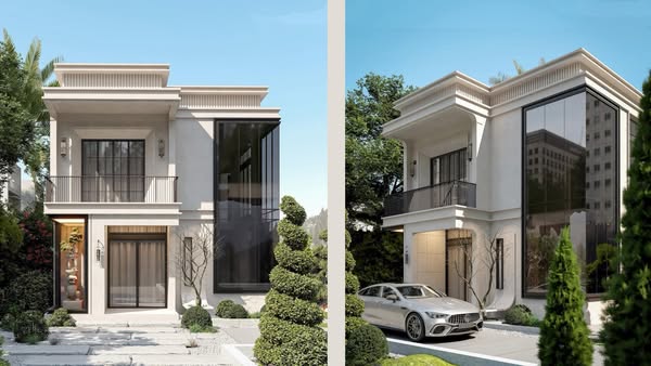 Mẫu nhà biệt thự 2 tầng, có 2 mặt tiền cùng không gian sống quanh nhà nhiều cây xanh, phong thủy hữu tình, khoảng sân cực Chill.